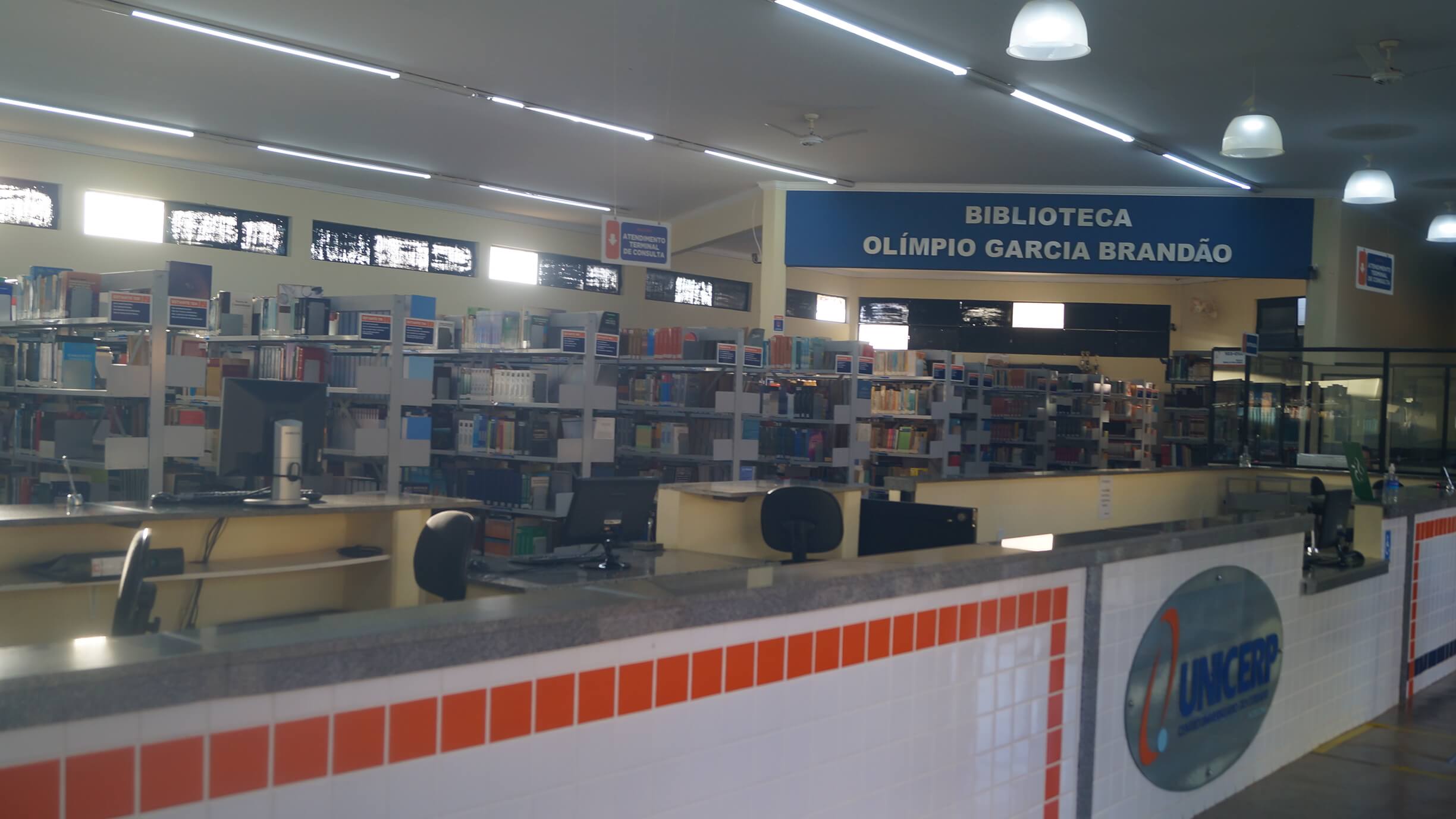 A biblioteca do Centro Universitário do Cerrado Patrocínio (UNICERP) recebe o nome de Olímpio Garcia Brandão. Atende aos alunos de graduação e pós-graduação, professores, funcionários da instituição e também à comunidade em geral. O acervo é de livre acesso e conta com mais de 70 mil itens. O espaço oferece Sala de Estudo em Grupo, Sala de Estudo Individual e Sala de Internet, disponíveis conforme a demanda.